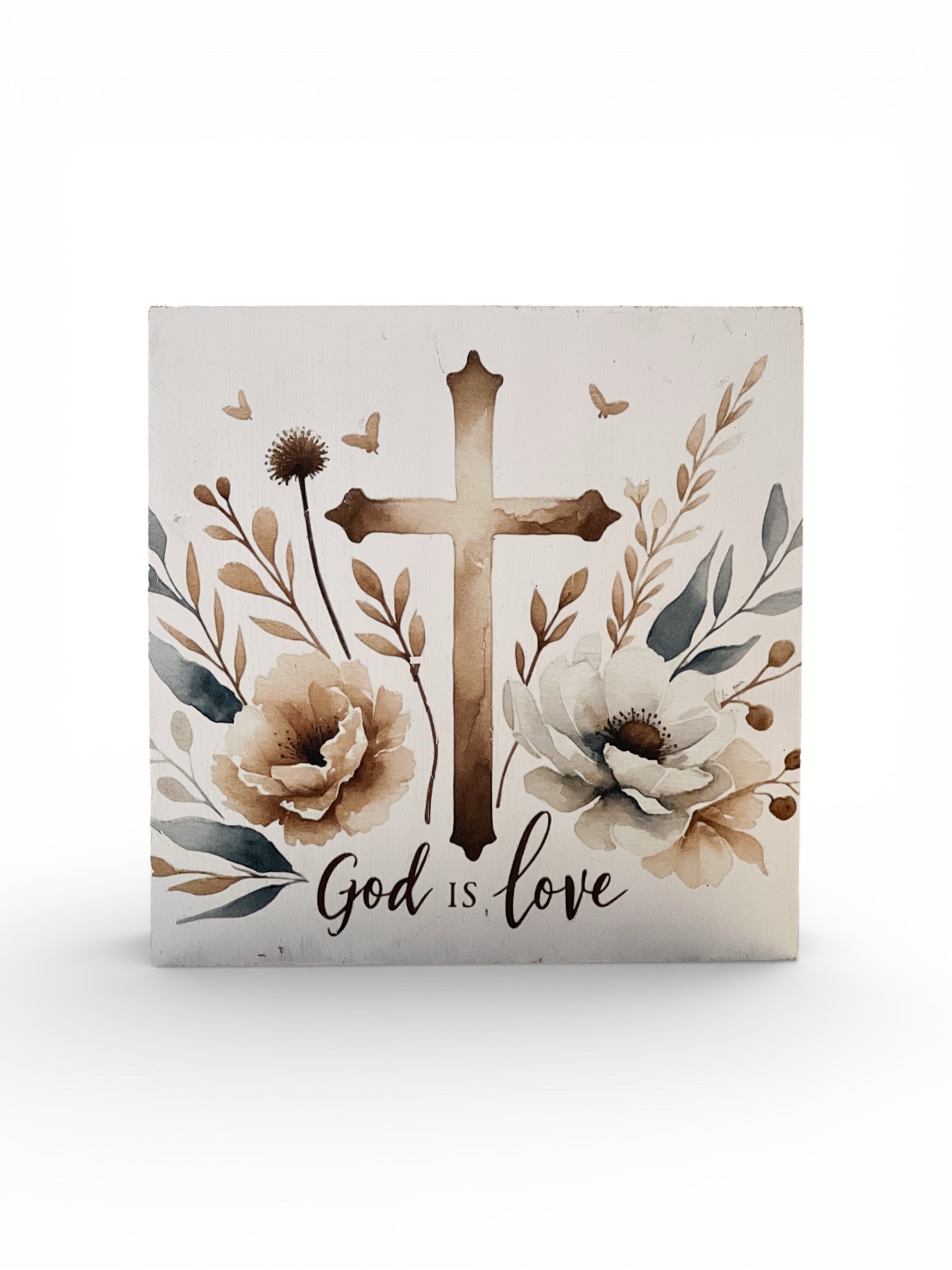 This is for God is Love 5X5 decorative shelf sitter by Melissa Bradshaw.  This board does have transfers that have been waxed for sealant. Do not store in high heated area.